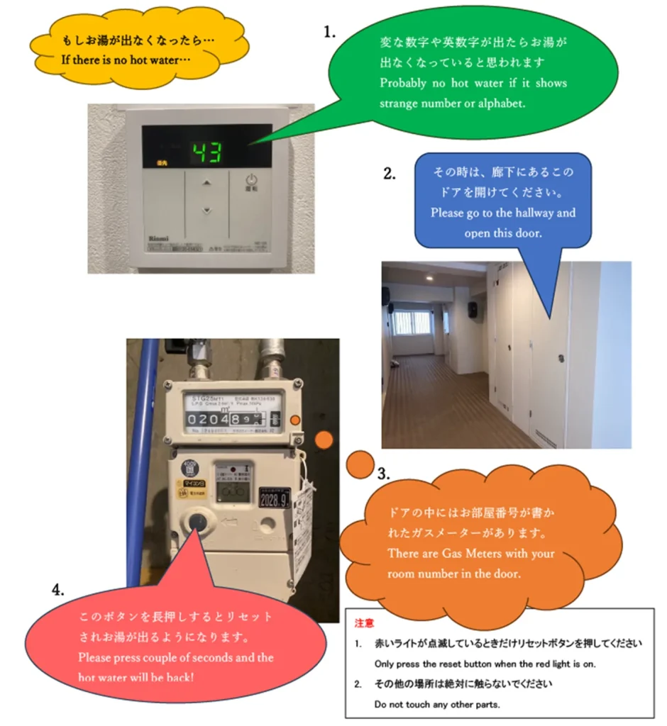 - 如果您的房间起火,请使用房门口的灭火器进行初期灭火。